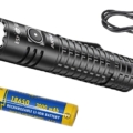 Die IP68 zertifizierte Taschenlampe wird mit einem Akku Typ 18650 betrieben, sie lässt sich aber auch mit 2 Batterien CR123A Batterien betreiben. Am Lampenkopf befindet sich eine Taste mit der Sie die ARTAX in verschiedenen Beleuchtungsmodi betreiben können. Die Modi wechseln sich in der Reihenfolge 100% – 50% – 15% und 0,5% ab. Die ARTAX verfügt über einen integrierten USB-C Anschluss. Das Ladekabel, 2 Ersatzdichtungen, eine Halteschlaufe und eine ausführliche Gebrauchsanweisung liegen der Verpackung bei.