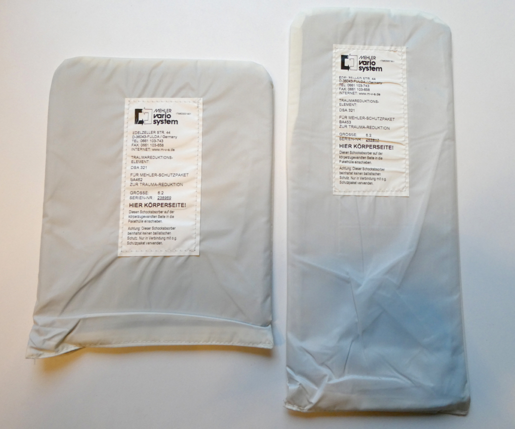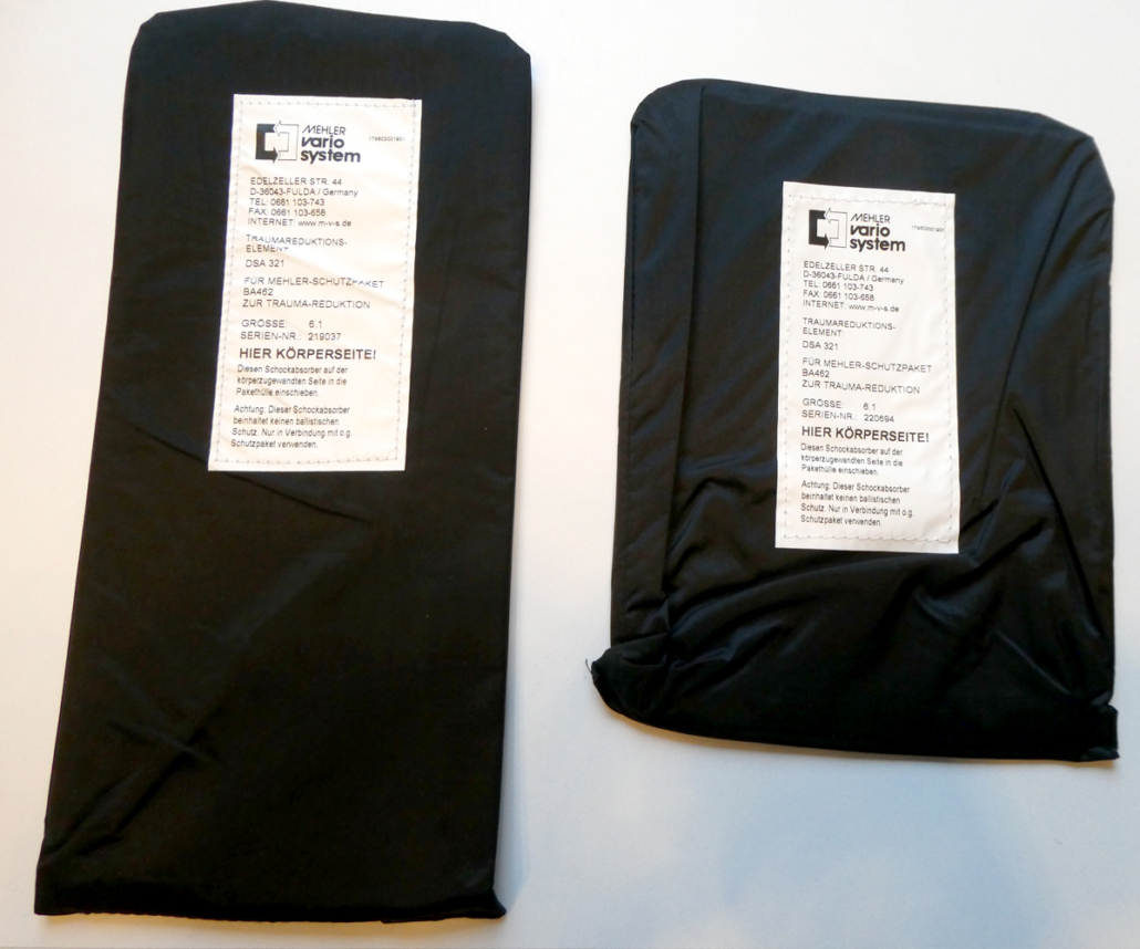 SCHUTZWESTEN-ZUSATZ-EINLAGEN zur Trauma-Reduzierung bei Geschoss-Treffern.